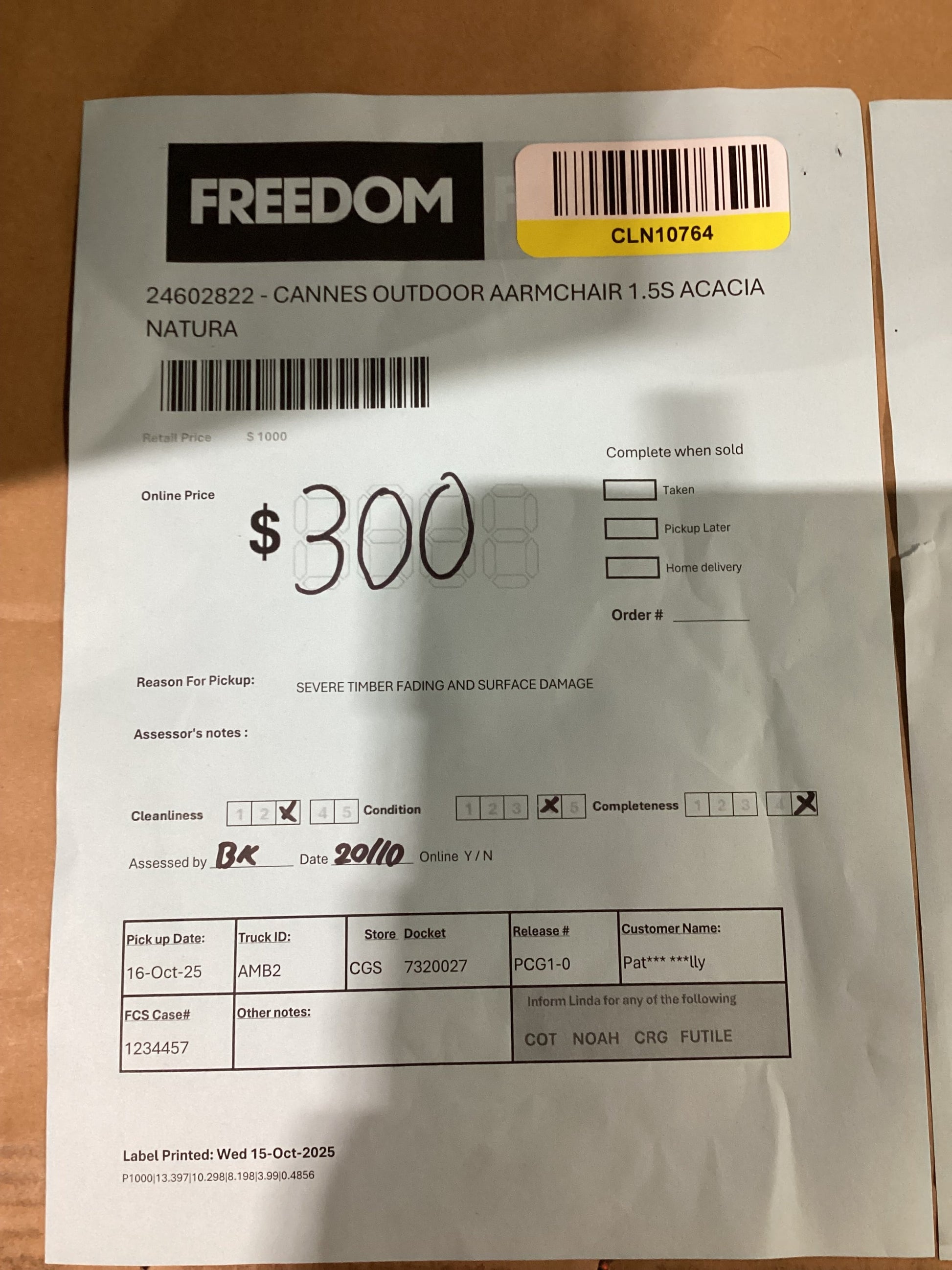 ASSESSOR NOTES: Cushons have some wear and backrest has a fading