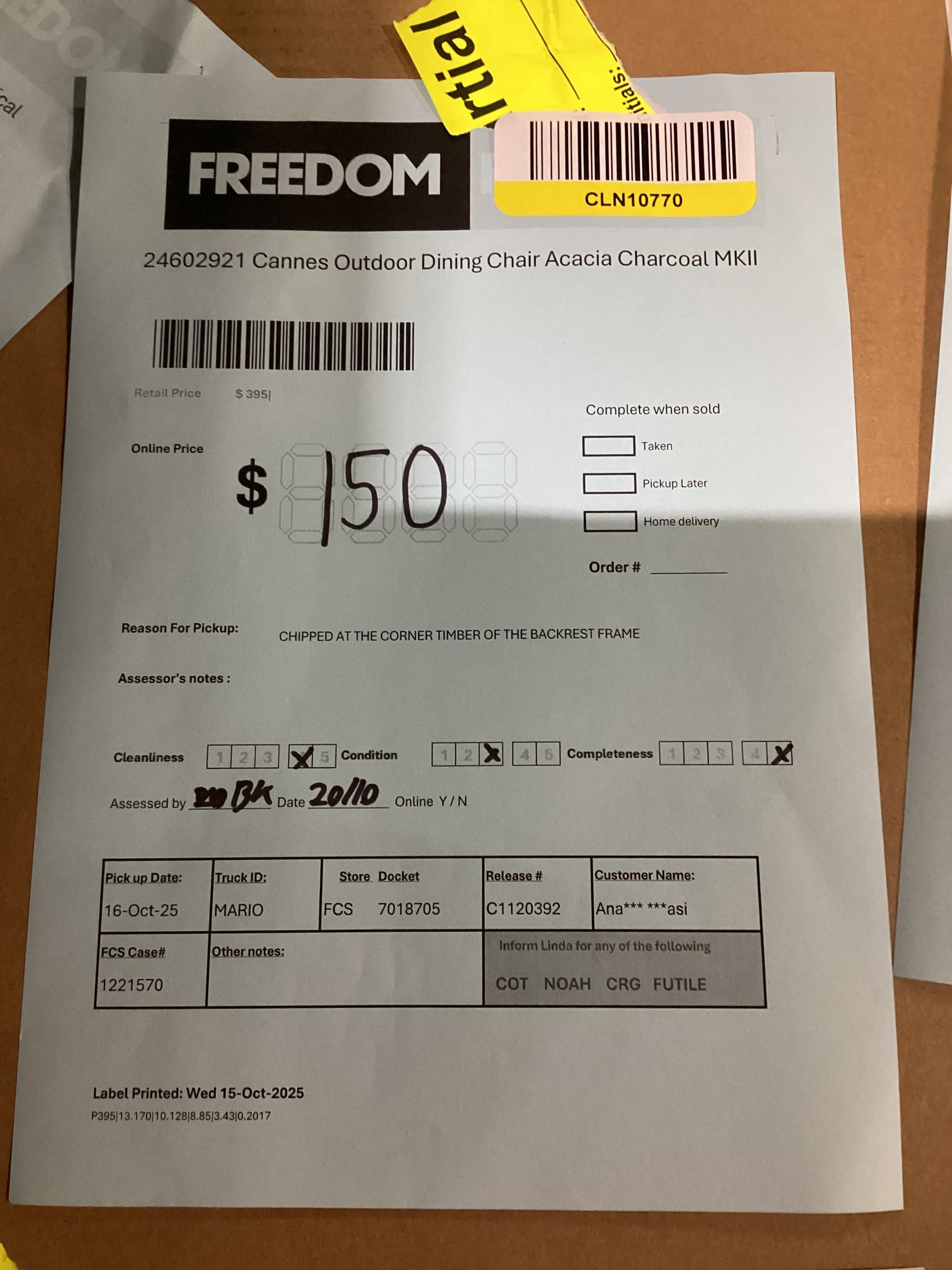 RETURN REASON:Â Chipped at the corner timber of the backrest frame
